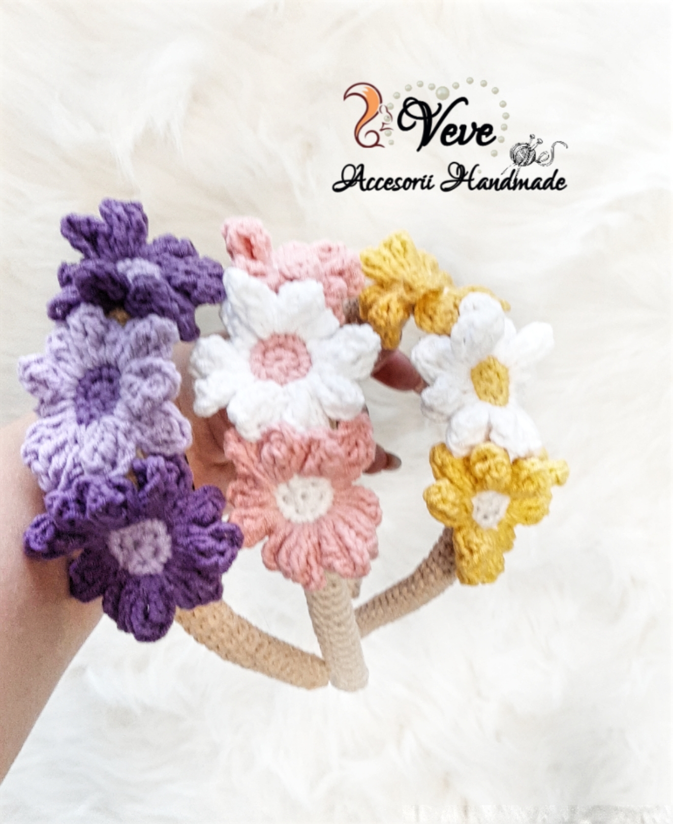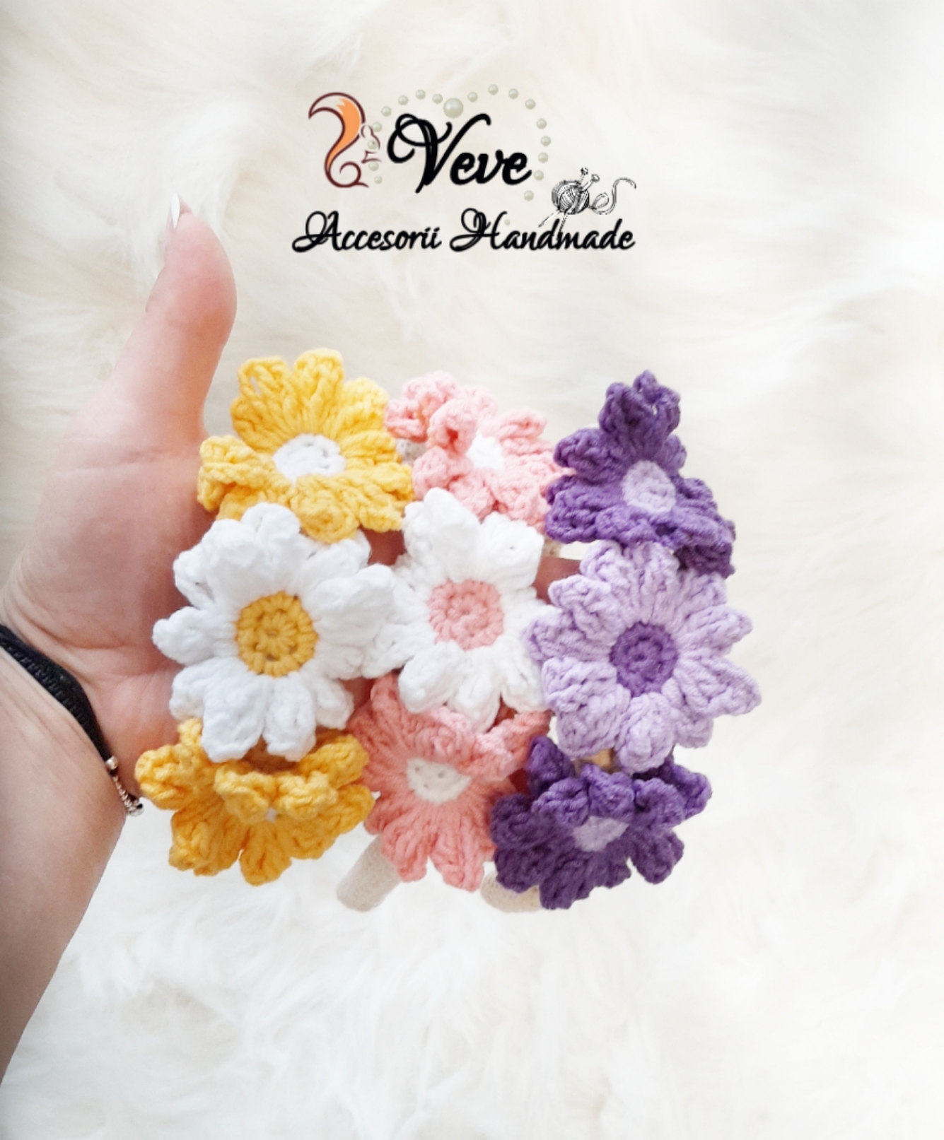 Adaugă un strop de veselie în ținuta ta cu aceste bentițe croșetate manual, decorate cu flori colorate. Confortabile, vesele și unicat – perfecte pentru fetițe sau iubitoare de accesorii delicate și feminine. Realizate cu grijă din bumbac moale, ideale pentru orice sezon!